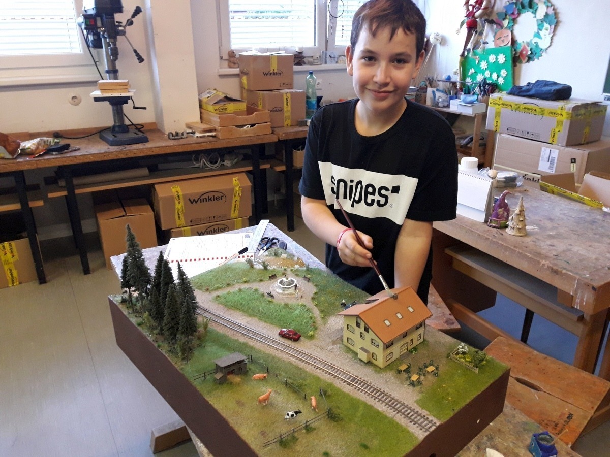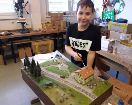 Auch heuer dürfen wir wieder die unverbindliche Übung „Modellbahn macht Schule“ anbieten. Von 2006 bis heute sind bereits an die 80 Schülermodule entstanden! Alle zusammen lassen sich zu einer mittlerweile beachtlichen Großanlage zusammenfügen, welche unseren Turnsaal gut ausfüllt.